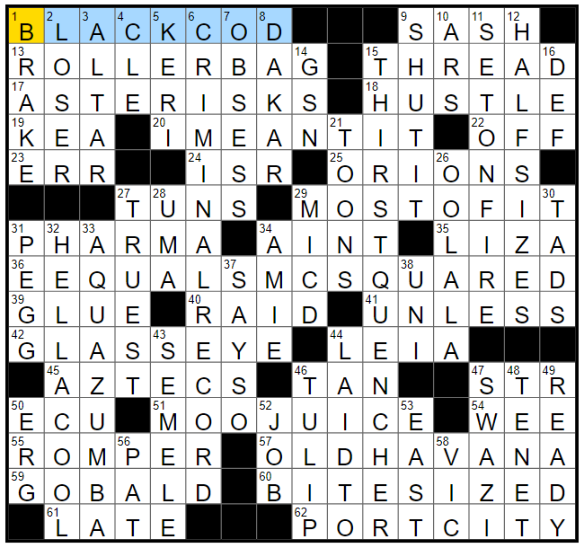66A clues us that we are likely looking for the last three of something given that it is a New Years Eve themed quiz. 67A highlights that we should look at the Down answers with 10 letters, of which there are 4: